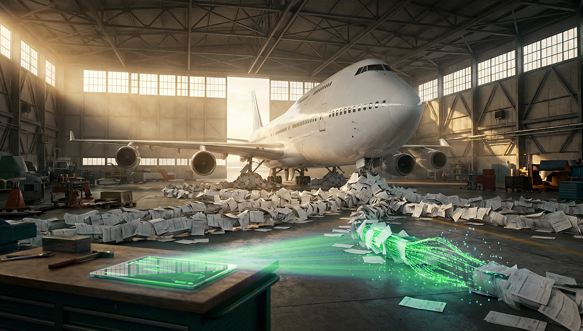When an aviation mechanic is inspecting an engine and flags a broken valve, the physical identification of the problem takes minutes. But what happens next? The mechanic has to log into an archaic, DOS-style inventory system to manually type in a 12-digit serial number. They have to draft a procurement request to buy the part. Once the part arrives and is installed, they have to manually format the rigid compliance paperwork required by the FAA to legally sign off on the repair.